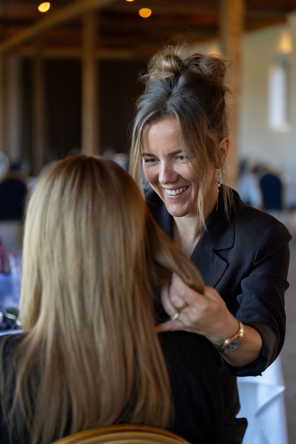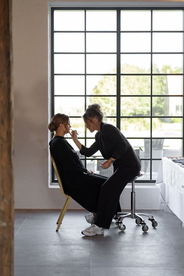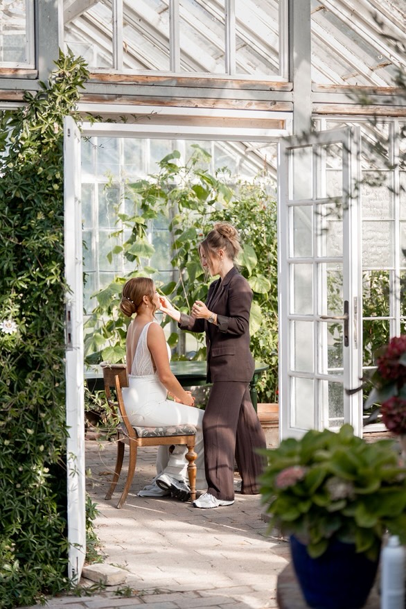 Pernille og Mie kom ud til os om morgenen – Mie stod for håret på mine brudepiger, mens Pernille tog sig kærligt af mig som brud. Servicen var helt i top, og stemningen var så hyggelig og magisk fra start til slut.